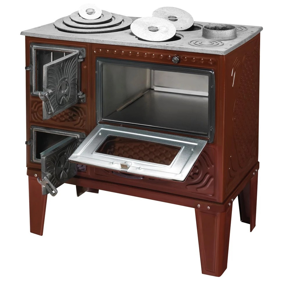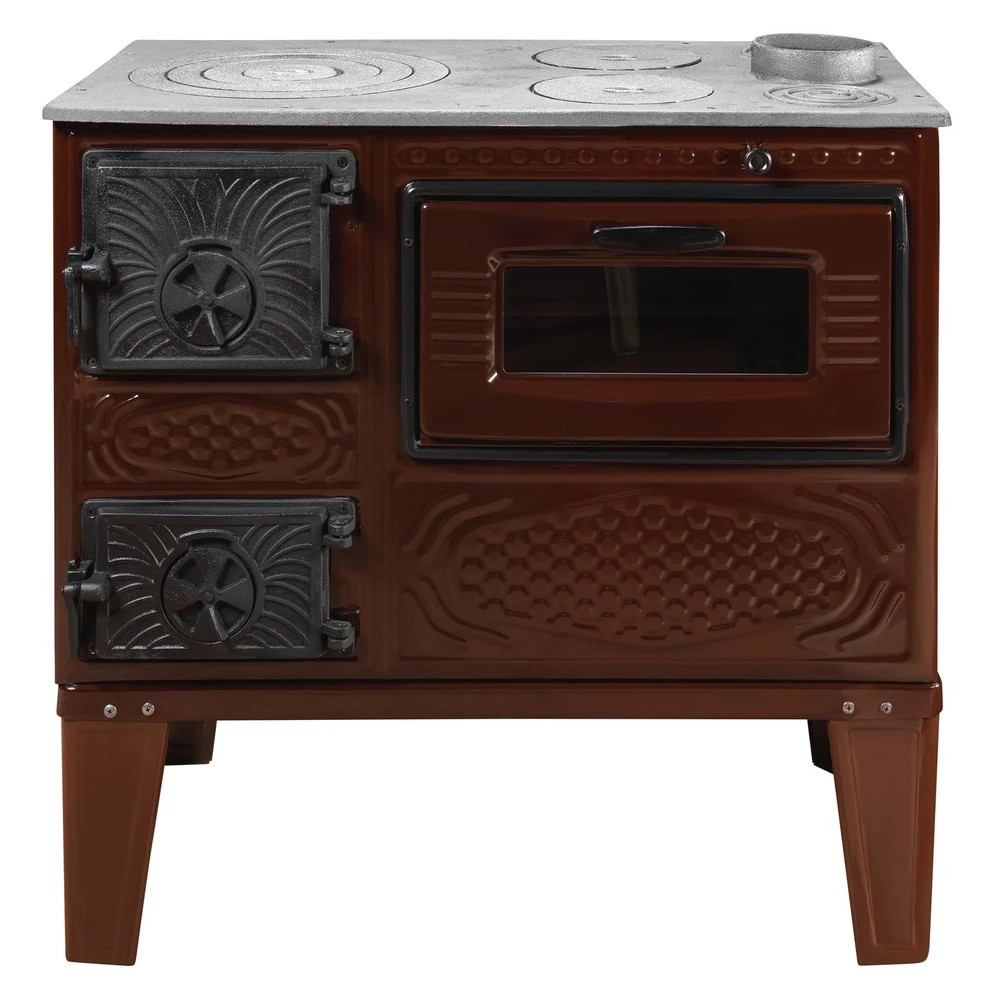 A barna zománcozott külső nemcsak esztétikus, hanem könnyen tisztítható is, így a sparhelt hosszú távon megőrzi megjelenését. A készülékhez különféle füstcső kiegészítők is elérhetők, amelyek segítik a telepítést és a huzatszabályozást.